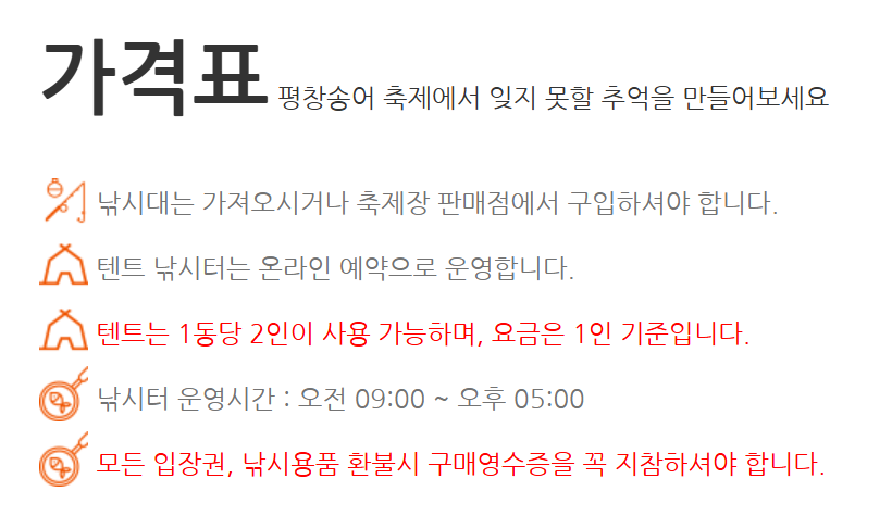 - 장소: 강원특별자치도 평창군 진부면 오대천 축제장