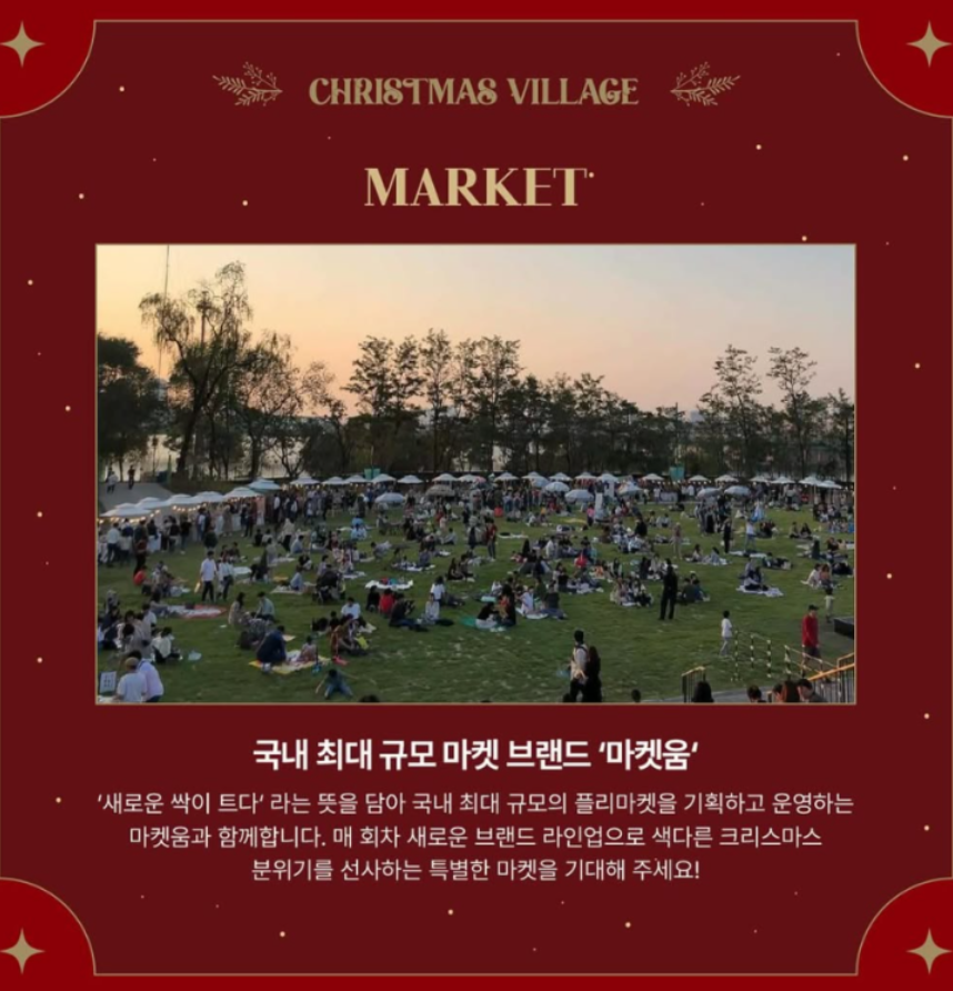 아래에서 2024 크리스마스 빌리지의 일정, 프로그램, 오시는 길까지 모든 정보를 확인해 보세요!