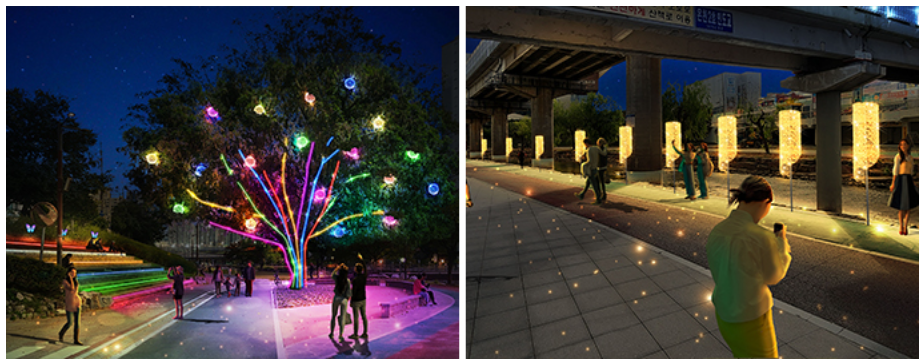 빛의 길을 따라 감상할 수 있는 다채로운 조명 연출이 돋보입니다.
